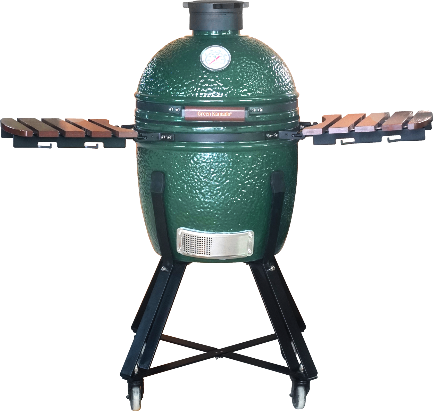 Самая популярная модель керамического гриля Green Kamado. Для неё существует самое большое количество аксессуаров и комплектация. Универсальный размер, который подойдёт и для скромной семьи и для большой вечеринки. Мы рекомендуем покупать эту модель гриля для среднего количества 6-8 человек. Это гриль - король стейков, самый концентрированный жар, оптимальный для 3-4 стейков одновременно.